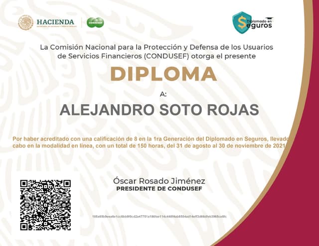 Además de mis certificaciones, también he recibido diplomas que respaldan mi formación y experiencia en el sector de los seguros. Tu tranquilidad es mi prioridad.